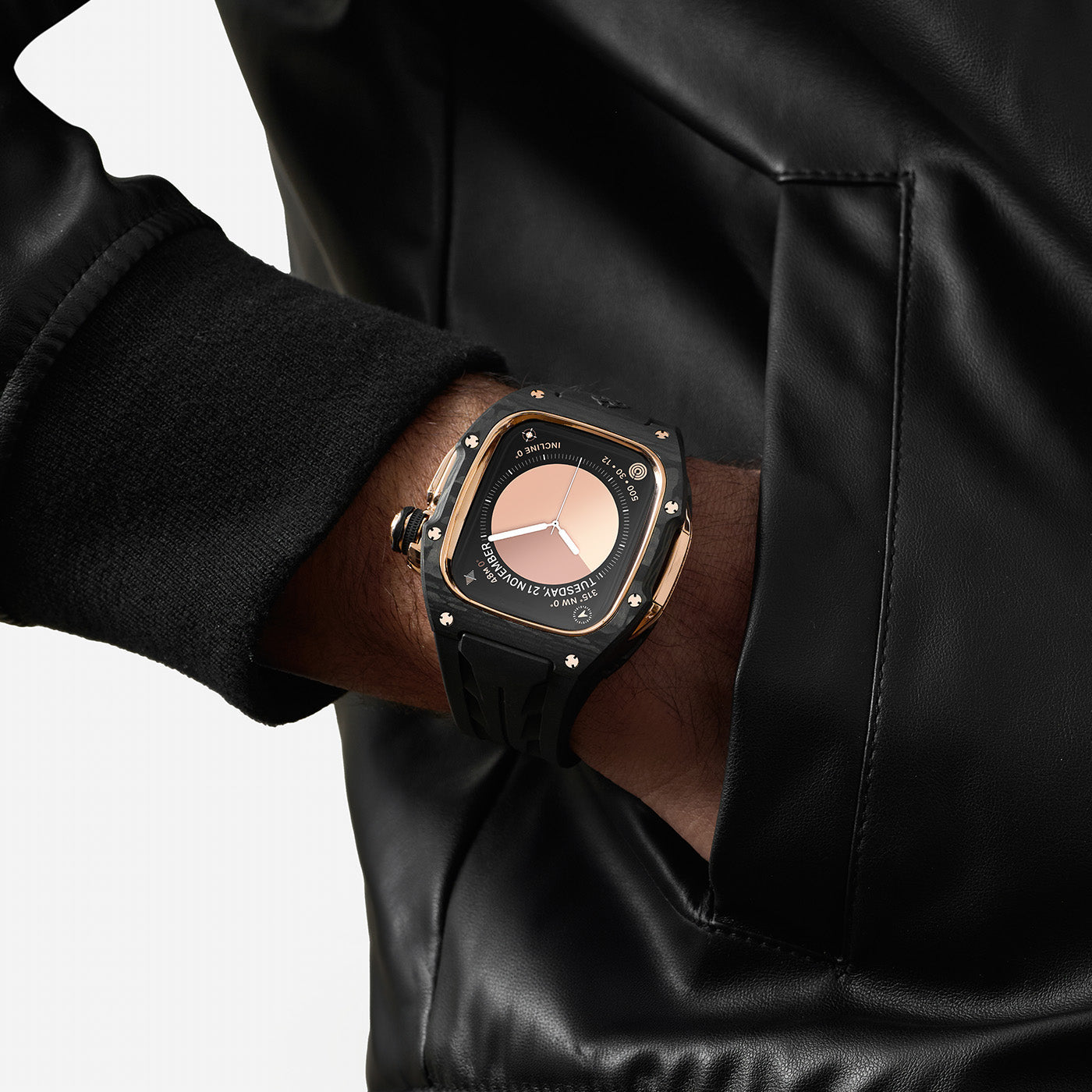 Carbon Composite with 18K Rose Gold PVD plated Titanium details -