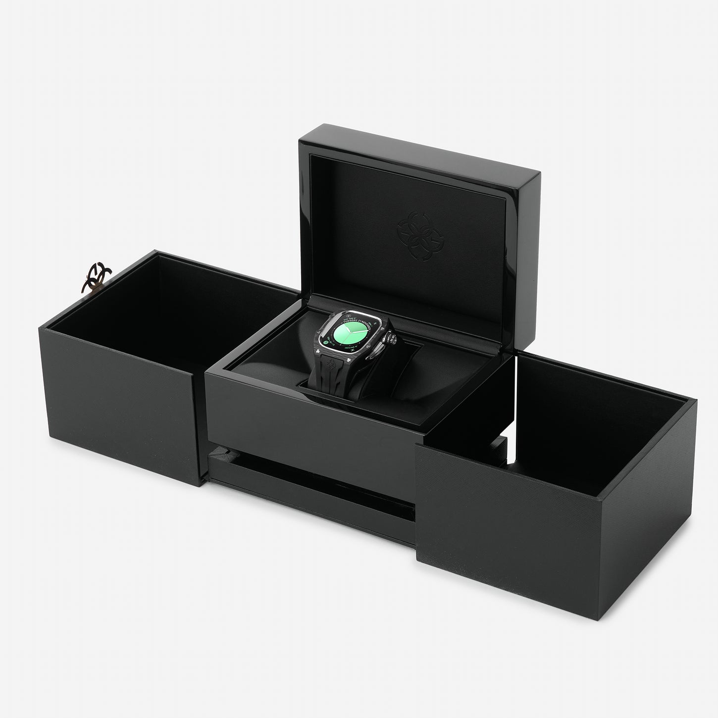 Each Racing Sport is presented in a box as exceptional as its contents. Meticulously handcrafted, it boasts elegant black wood and a leather interior. This exquisite presentation is a testament to our dedication to excellence, transforming the unveiling of your Racing Sport into a memorable journey of discovery.
