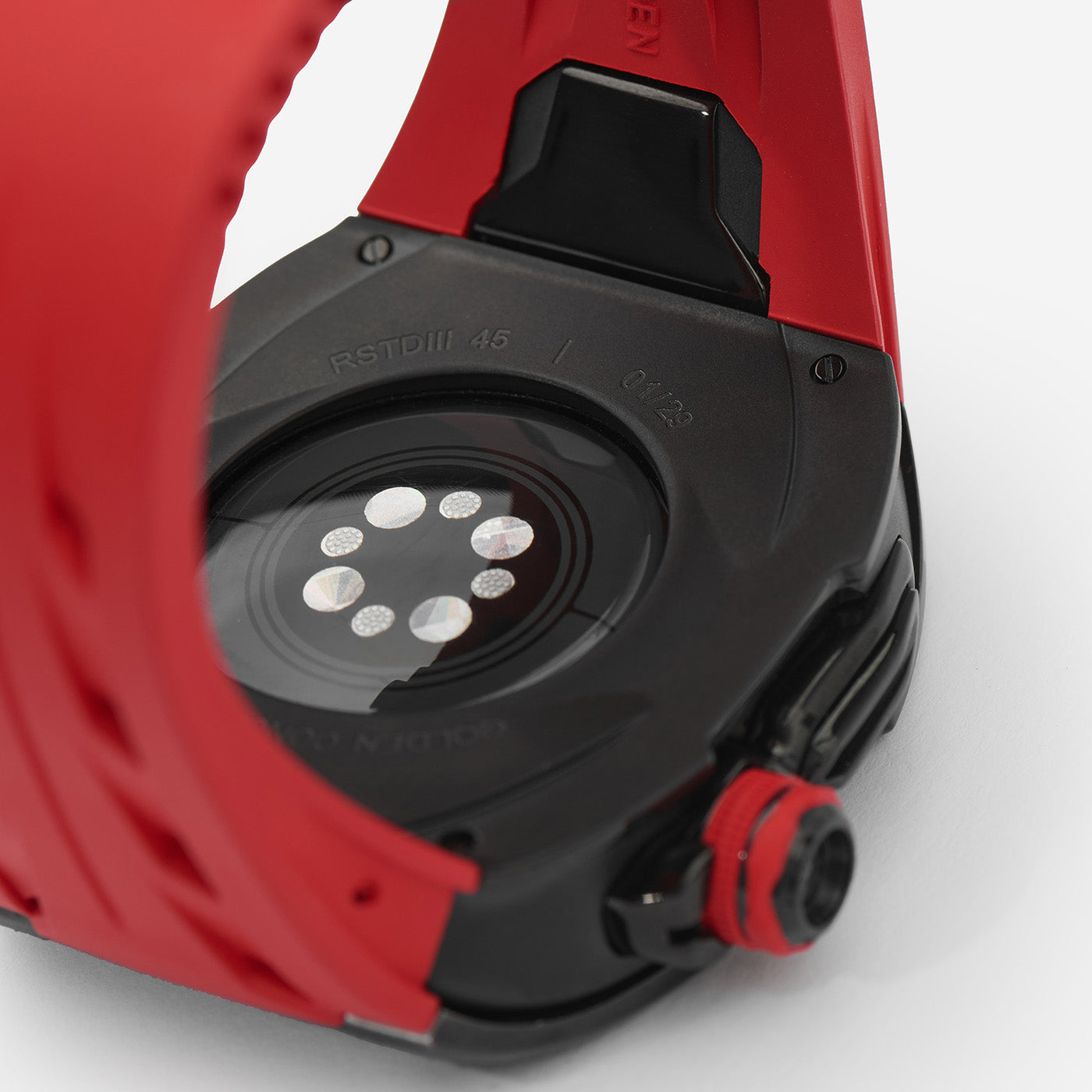 The Racing Sport Edition redefines convenience with its patented Hatch-Bezel® technology. This groundbreaking design allows for the effortless installation and removal of your Apple Watch at the push of a button.