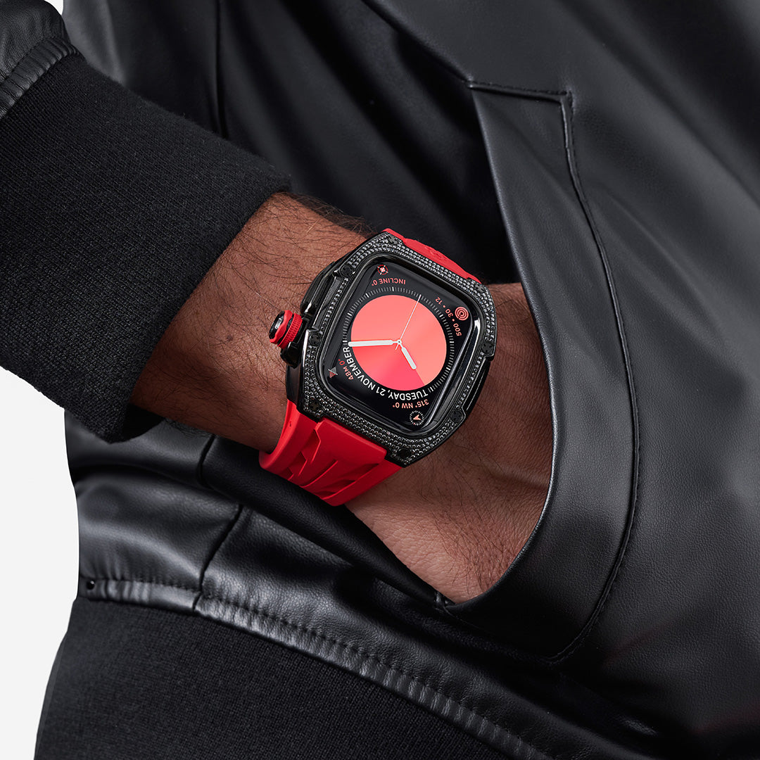 Combining precision craftsmanship with cosmic elegance, the Diablo stands as a masterpiece of design. Skillfully adorned by hand, the bezel boasts 310 black Moissanite gems, ensuring that each case is a truly unique expression of luxury.