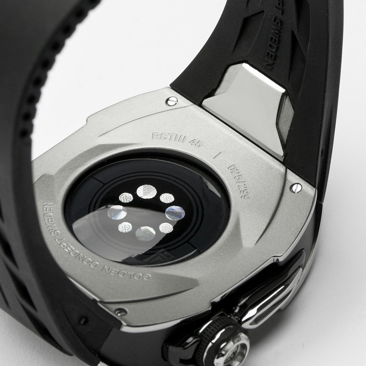 The Racing Sport now features our latest innovation, enabling you to change the straps with a single click, effortlessly matching your watch to your outfit. Crafted from Fluoroelastomers, these straps offer superior durability and comfort compared to traditional rubber, ensuring resilience and a flawless fit for any occasion