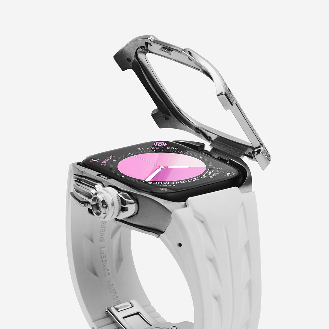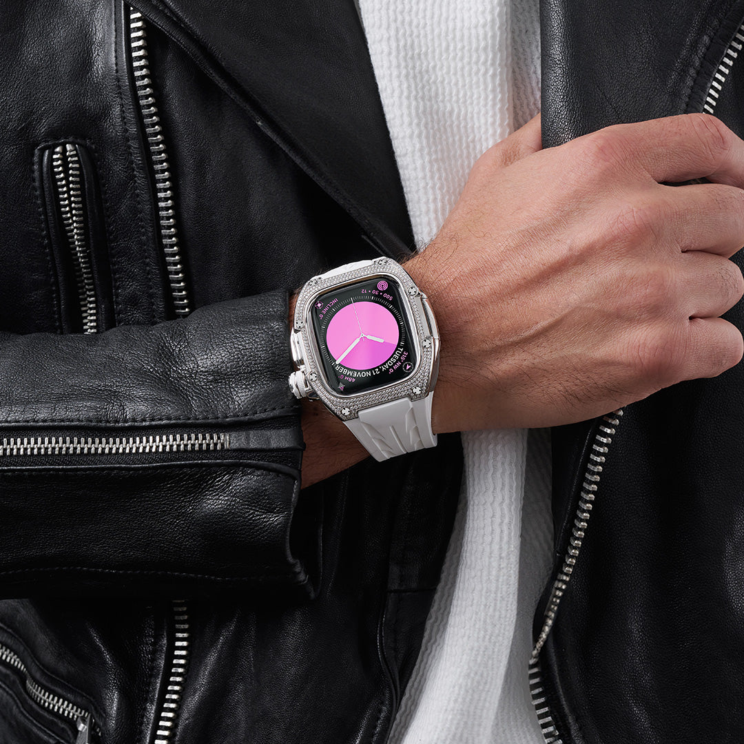 Marrying precision craftsmanship with cosmic elegance, the Snowflake emerges as a masterpiece of design. Hand-adorned with care, the bezel showcases 410 white Moissanite gems, ensuring that each case is a truly unique expression of luxury.
