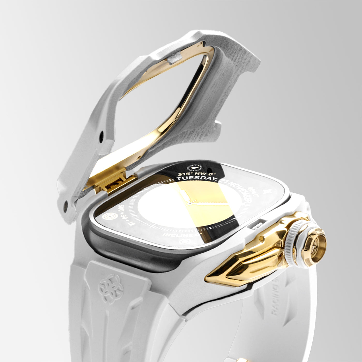 The Racing Sport Edition redefines convenience with its patented Hatch-Bezel® technology. This groundbreaking design allows for the effortless installation and removal of your Apple Watch at the push of a button.