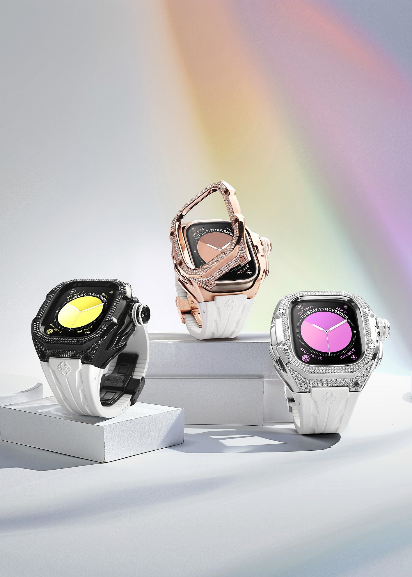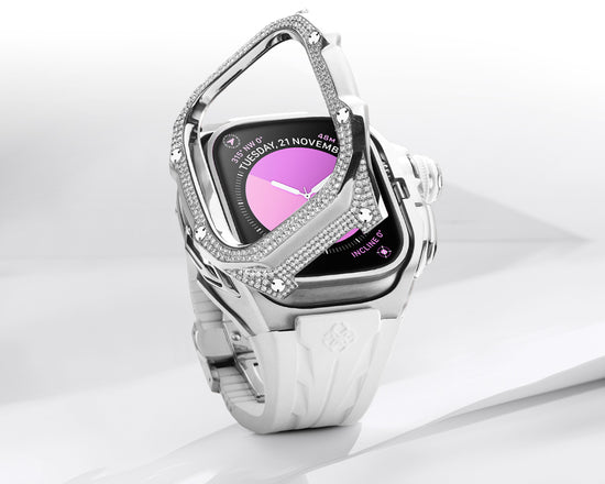 Crafted for those who appreciate meticulous craftsmanship, the Racing Sport edition Moissanite elevates your Apple Watch Ultra with exquisite Moissanite gems. Originating from space, these gems possess a distinctive black hue that sets each case apart. Unlike conventional diamonds, Moissanites exude a profound and captivating allure, enhancing the charm of your device.