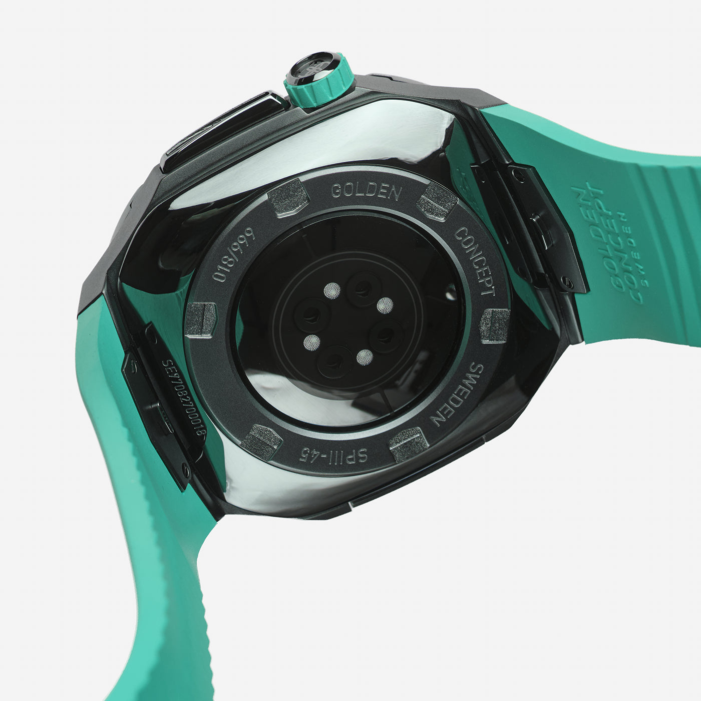 Crafted with meticulous attention to detail, the Titanium Grey Sport Edition case exudes elegance and innovation. Its refined titanium grey case paired with a popping sporty mint-colored rubber strap creates a dynamic and modern aesthetic, making it an ideal accessory for those who value both technology and fashion.