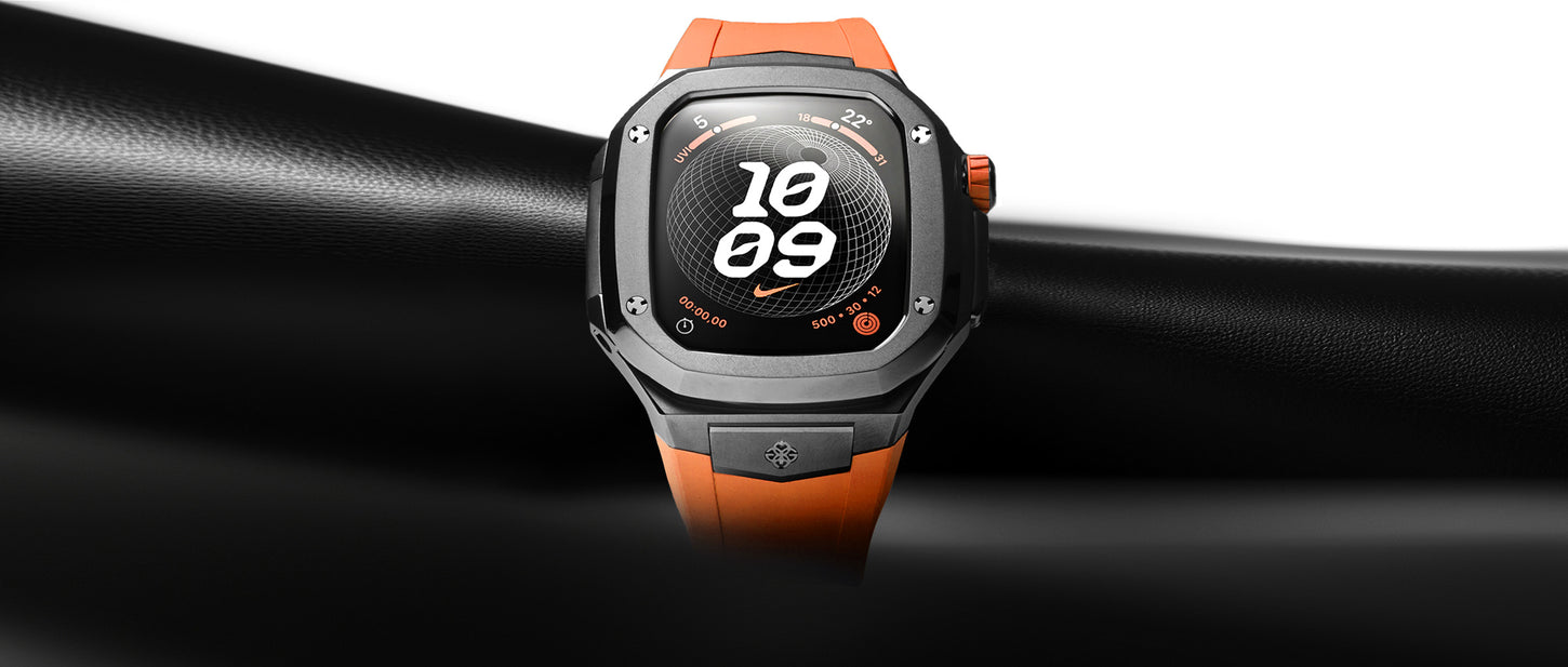 In 2019, we introduced the world to the first premium case for the Apple Watch, establishing Golden Concept as a leader in desirable tech accessories. Today, we uphold that legacy with an enhanced version of the beloved Sport Edition. Our commitment to excellence is evident in every detail of this new case, from its effortless installation mechanism featuring our patented "Hatch Bezel" to its vibrant, easy-to-change rubber straps equipped with an elegant butterfly clasp.