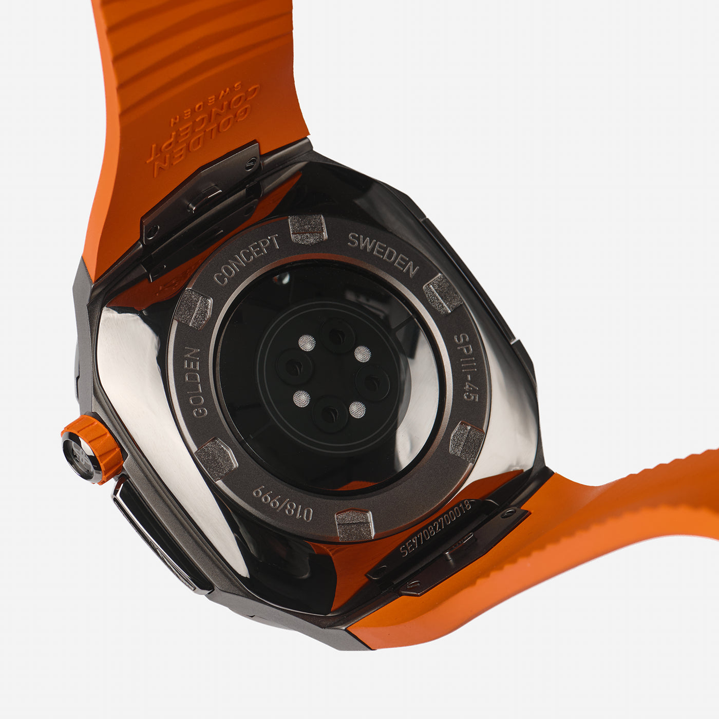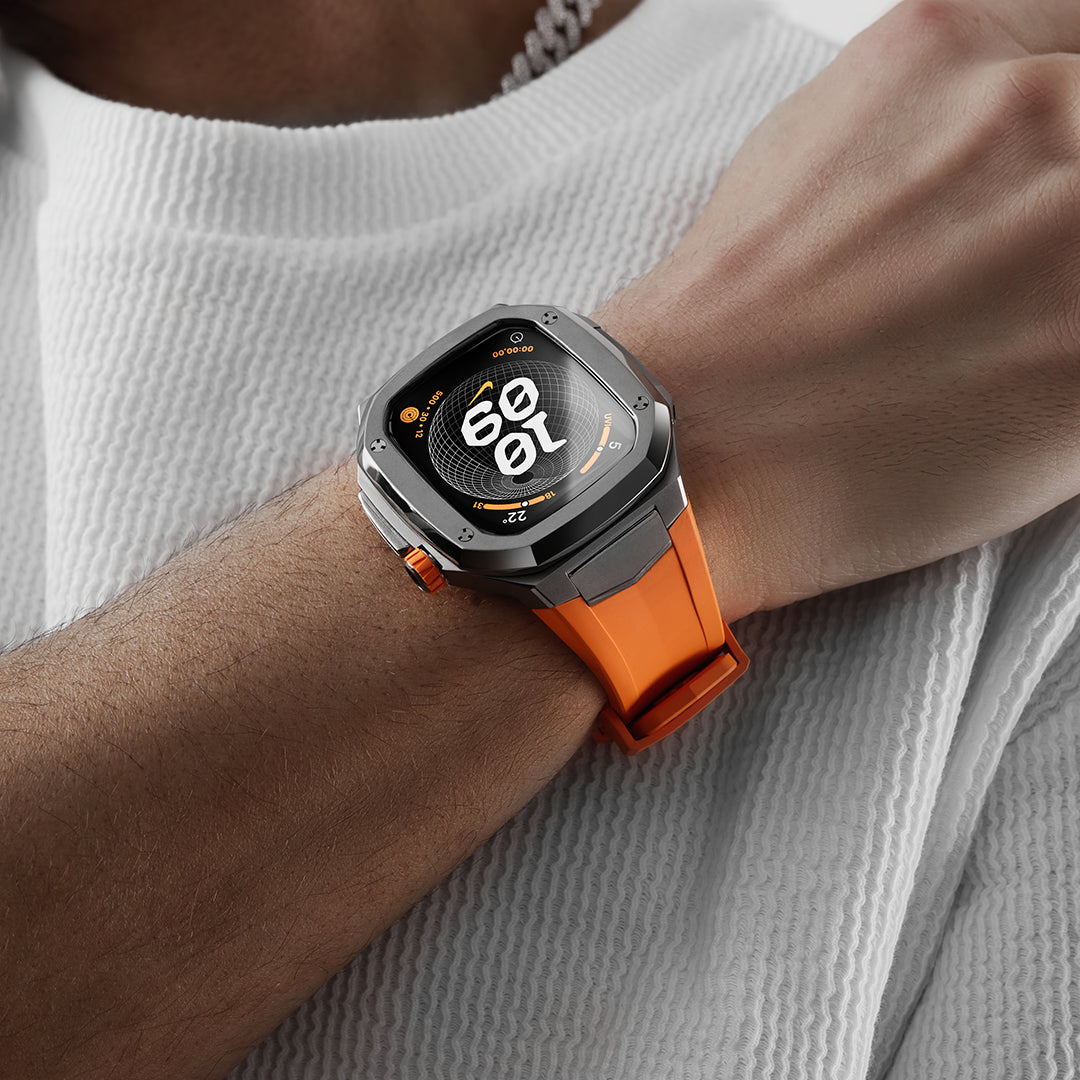 Crafted with meticulous attention to detail, the Titanium Grey Sport Edition case exudes elegance and innovation. Its refined titanium grey case paired with a striking sunset orange rubber strap creates a dynamic and modern aesthetic, making it an ideal accessory for those who value both technology and fashion.