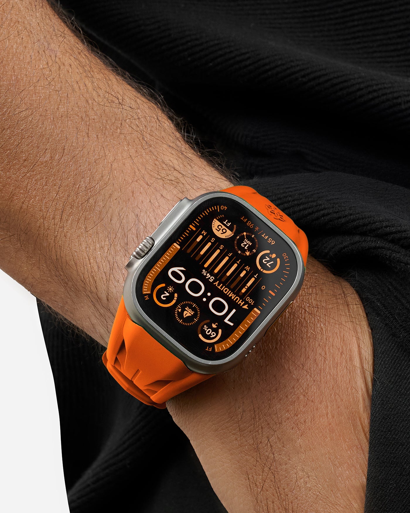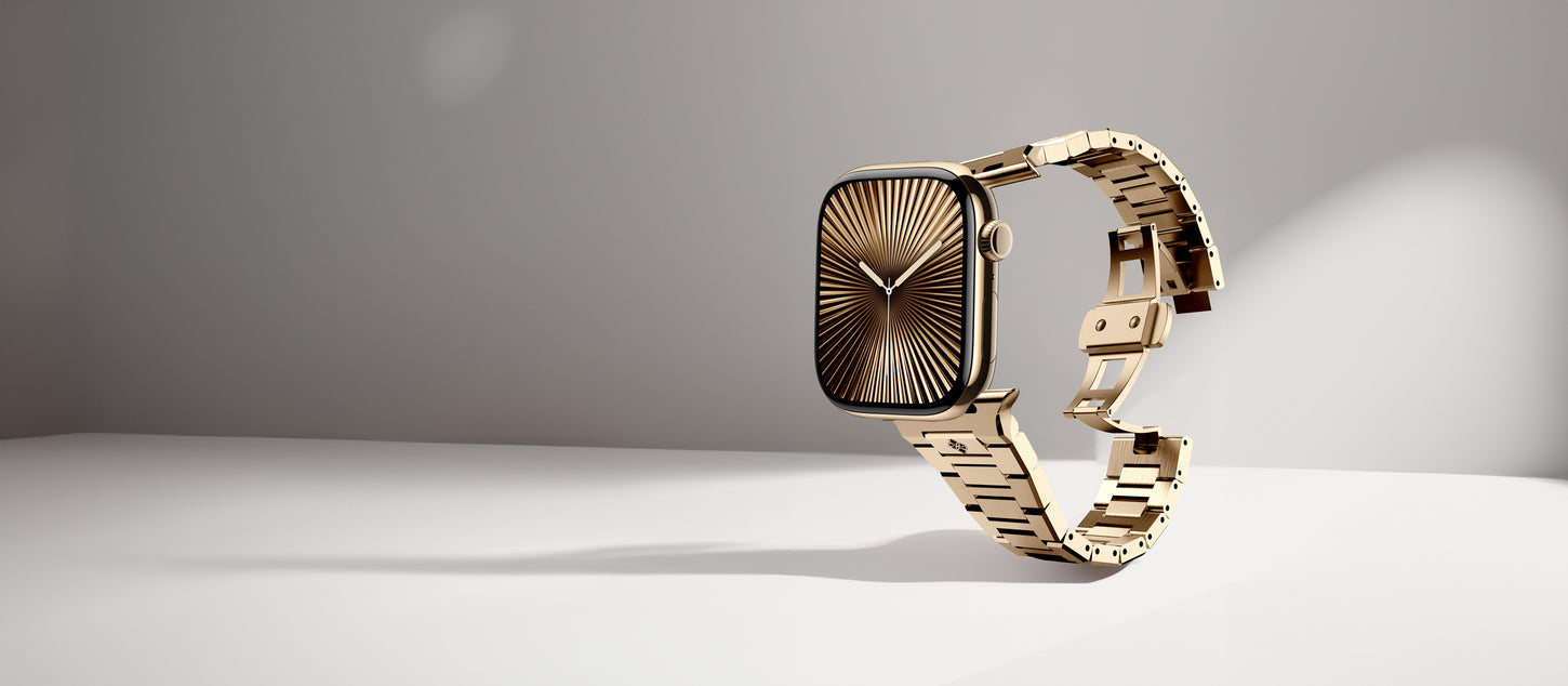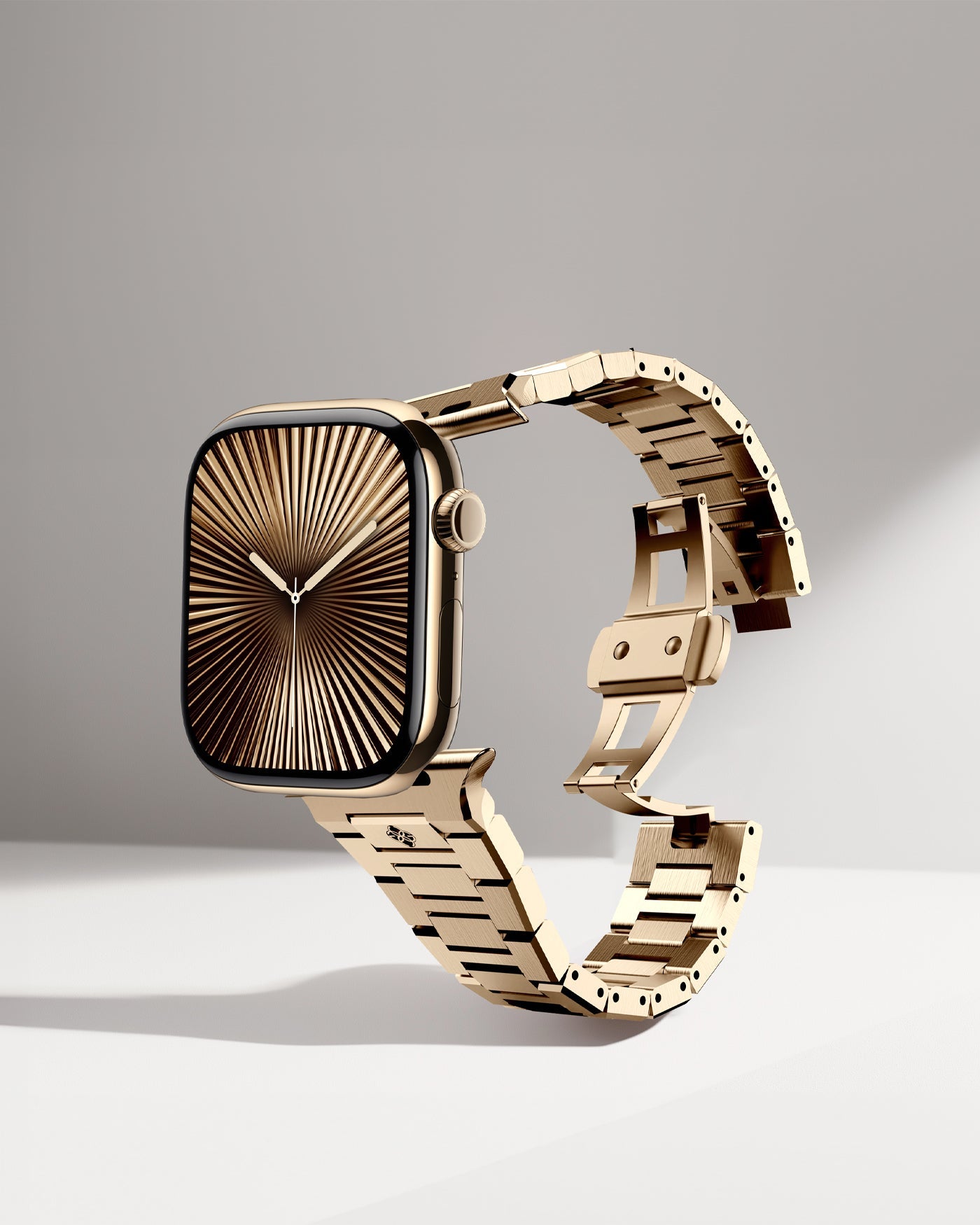 Upgrade your Apple Watch with Golden Concept's premium straps. Meticulously crafted for quality and style, these straps transform your watch into a statement piece. In addition to our timeless collections in stainless steel, we are excited to introduce an extension of colors in the Evening Edition, and two new collections: the Racing Sport, made from durable fluoroelastomer, and the Leather Edition, crafted from premium Italian calfskin. Elevate your Apple Watch with high-end sophistication and versatility.