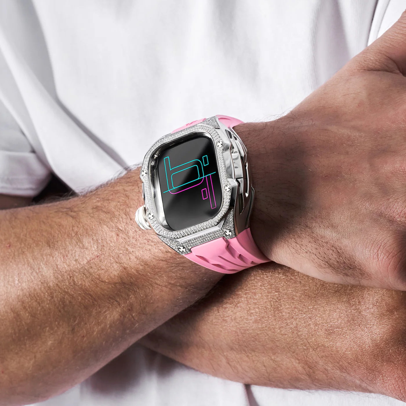 Introducing the Racing Sport Moissanite Miami Ice Edition, designed for the 49mm Apple Watch Ultra 1 and 2. This edition captures the essence of Miami's dynamic spirit, designed for those who crave a watch that stands out. With its vibrant details and limited availability, it brings an undeniable energy to your wrist, elevating both style and confidence.