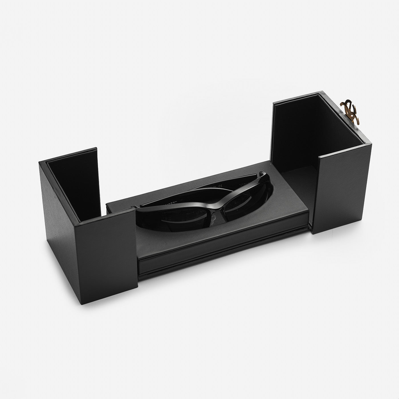 The Vision sunglasses are accompanied by a hard protective case, designed with a precise carve-out tailored specifically for the glasses. The interior is lined with soft leather, offering a luxurious feel while safeguarding your sunglasses, ensuring both style and protection in one sleek package